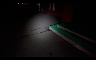The artist wanders about the neighbourhood and scans objects underfoot with a torch representing the movement of his gaze.